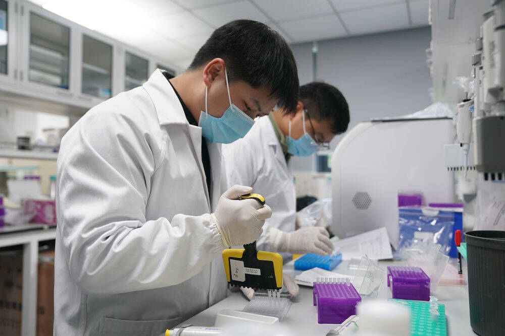 ??11月20日,在蘇州一家生物制藥公司,實驗人員在提取信使核糖核酸。