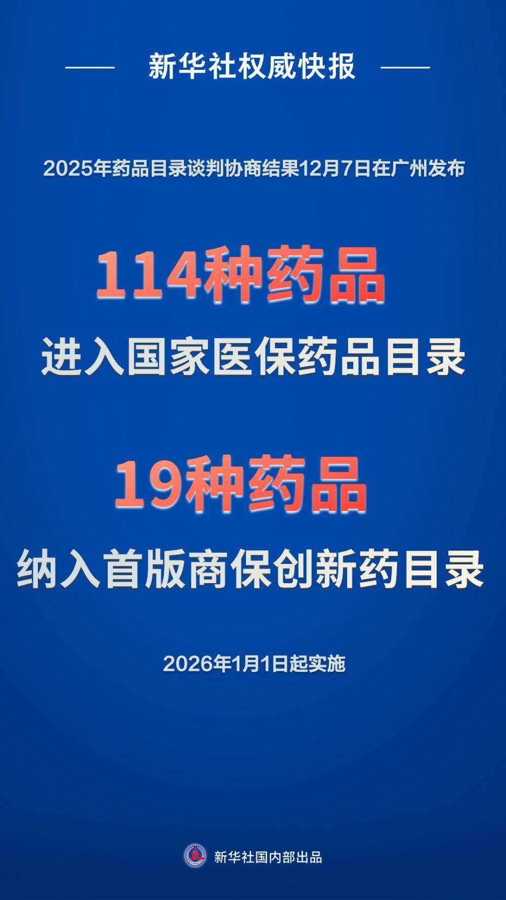 12月7日,在2025創(chuàng)新藥高質(zhì)量發(fā)展大會上,新版國家醫(yī)保藥品目錄及首版商保創(chuàng)新藥目錄正式發(fā)布,114種藥品成功納入醫(yī)保、19種新藥進商保創(chuàng)新藥目錄,對參保人“藥籃子”全面升級。