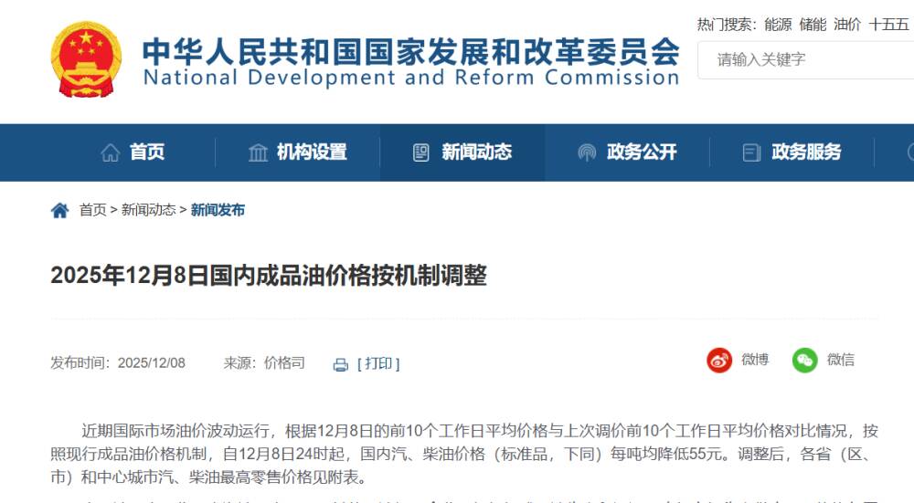 近期國(guó)際市場(chǎng)油價(jià)波動(dòng)運(yùn)行,根據(jù)12月8日的前10個(gè)工作日平均價(jià)格與上次調(diào)價(jià)前10個(gè)工作日平均價(jià)格對(duì)比情況,按照現(xiàn)行成品油價(jià)格機(jī)制,自12月8日24時(shí)起,國(guó)內(nèi)汽、柴油價(jià)格(標(biāo)準(zhǔn)品,下同)每噸均降低55元。調(diào)整后,各?。▍^(qū)、市)和中心城市汽、柴油最高零售價(jià)格見附表。